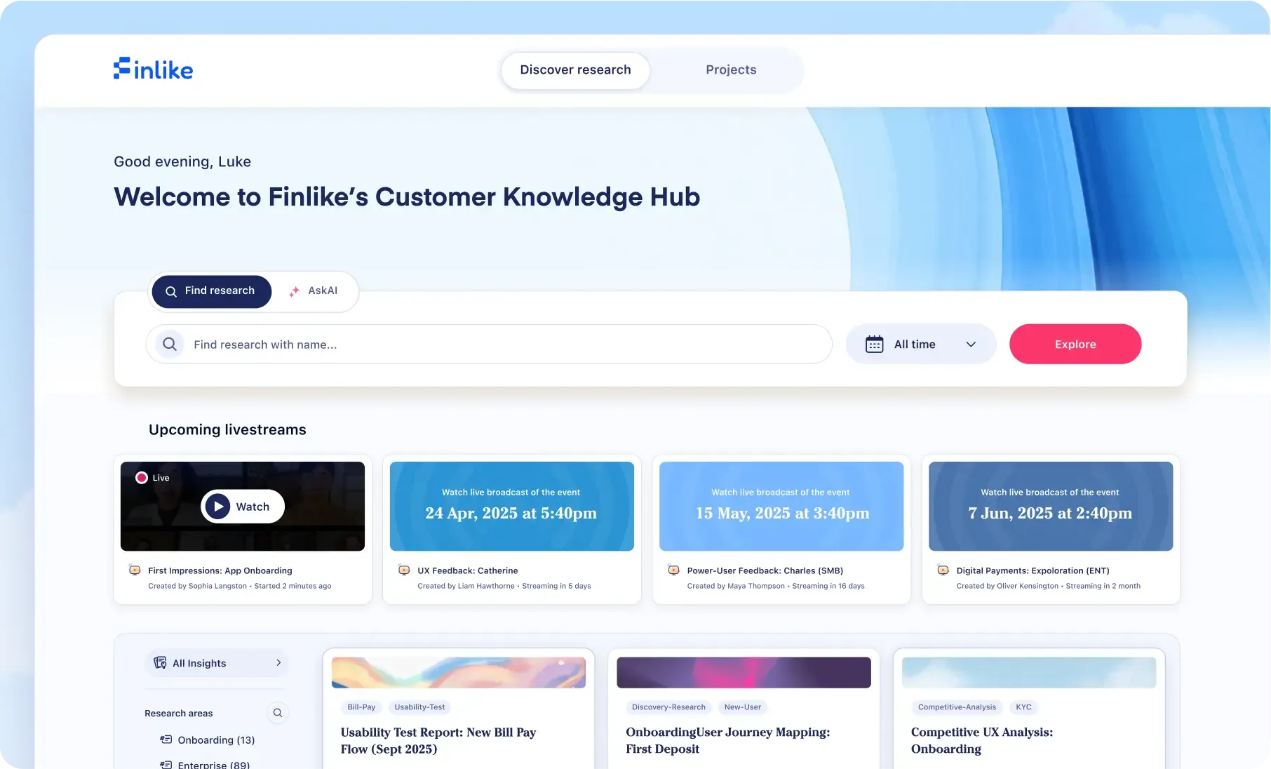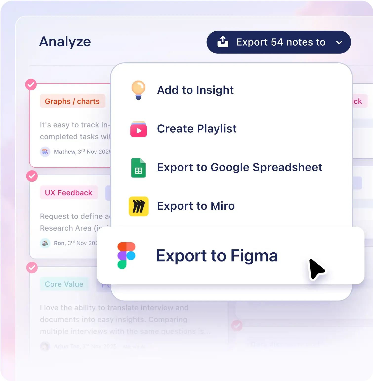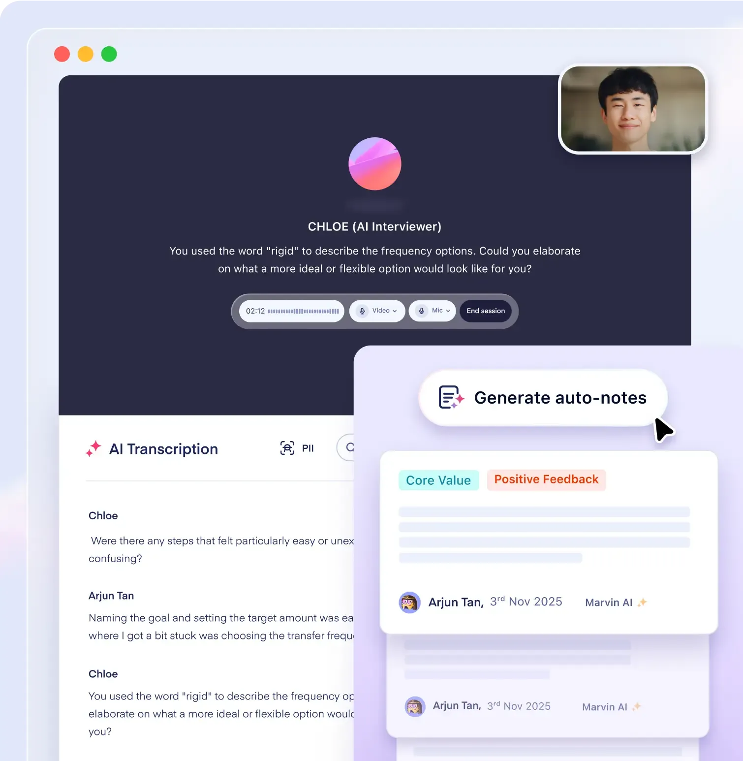 Conduct, record, or import all your user interviews.